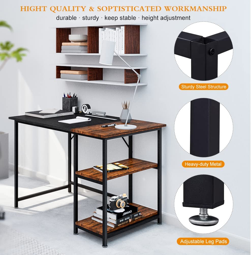 【Spacious Workstation】- home office desk size: 39.4 x 23.6 x 25.2inches(L*W*H) ,plenty of space allows for two computers and all of working stuff, shelves hold more books, collect storage boxes and make your place cleaner .